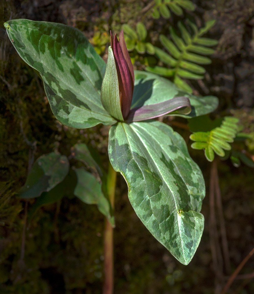 In fact, the trillium have also been delayed by the weather. We found lots of them, but the plants are still small and most had not yet formed a flower bud. Nevertheless, we found a few open flowers to appreciate. I’d say two weeks from today would be a perfect day to go back to see lots of flowers!