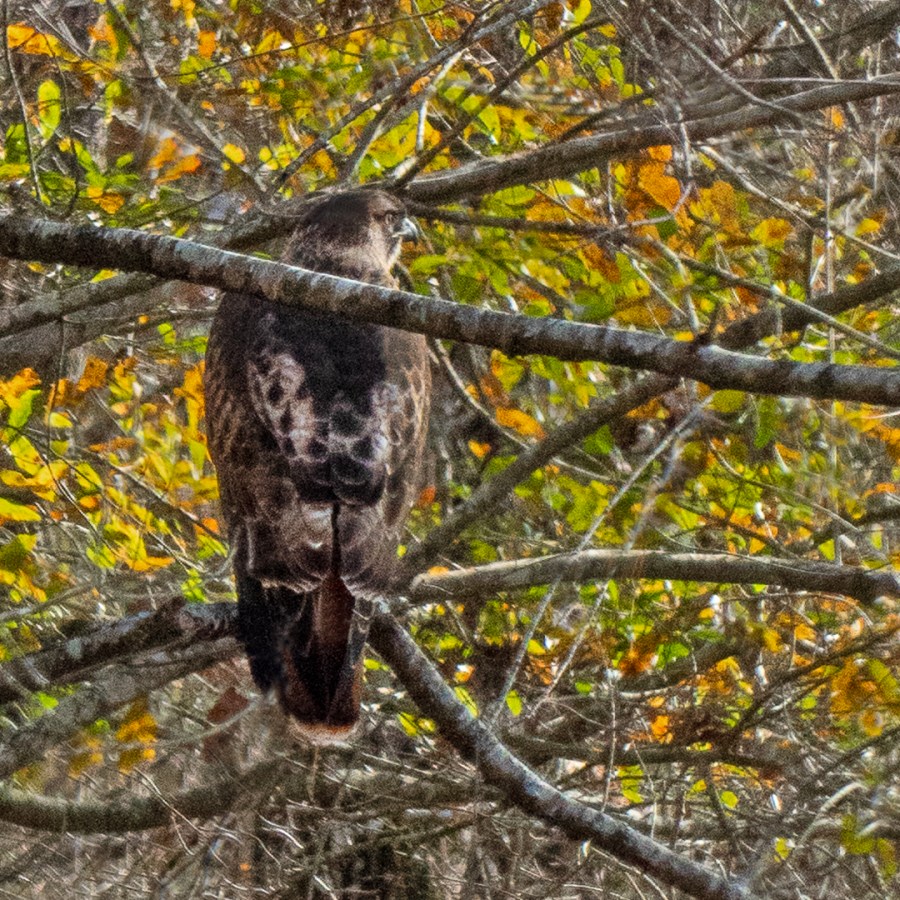 The Red-tailed Hawk (Buteo jamaicensis) was a second highlight of the day. We spotted it in a small wooded area between houses and it did not immediately fly away when we pulled to the side of the road. It seemed to be interested in something on the ground we could not see. But it sure knew how to make life hard for the photographer! Finally, it turned its head just right for one decent click.