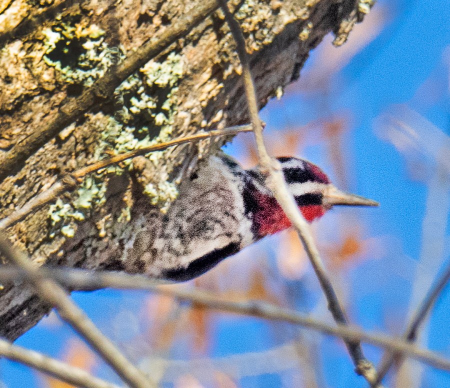 Likewise, the Yellow-bellied Sapsucker (Sphyrapicus varius) knew just exactly how to foil the photographer by staying behind a branch. But it too turned its head just right for a split second!