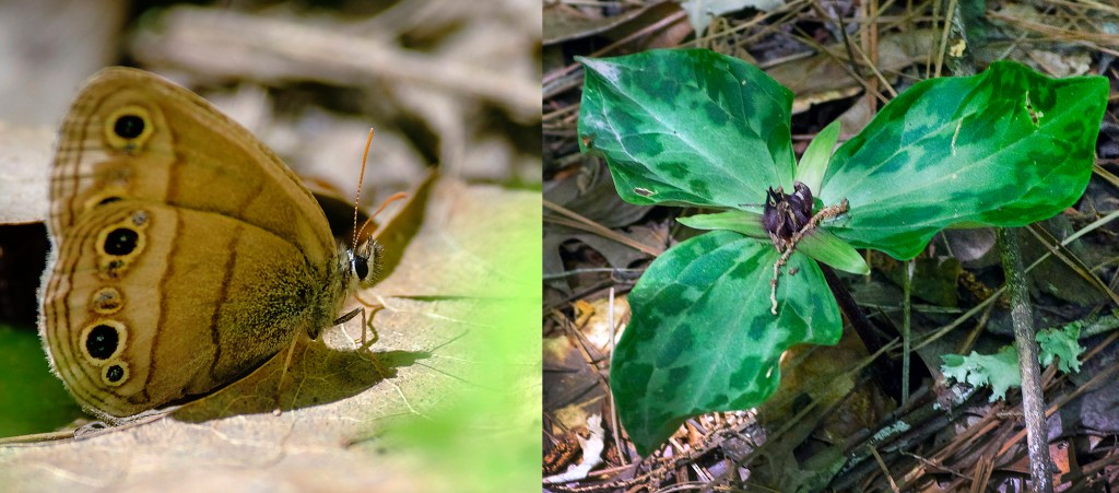 Two reasons I find Tunica Hills special: It’s the only place I’ve ever photographed Little Wood Satyr (Megisto cymela) and this particular species of Trillium (Trillium foetidissimum). (Photos by BJK from 2019.)