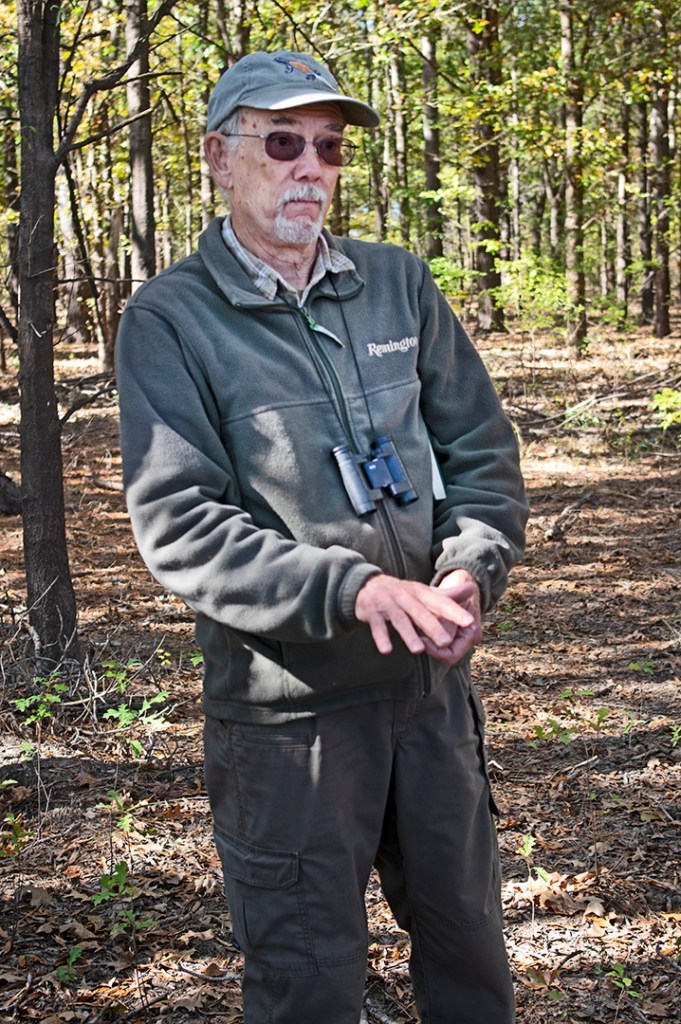 Kelby Ouchley explains that, in Louisiana, one foot of elevation makes a difference in which native trees species were planted in this, the first section of the Mollicy Unit to be reforested.
