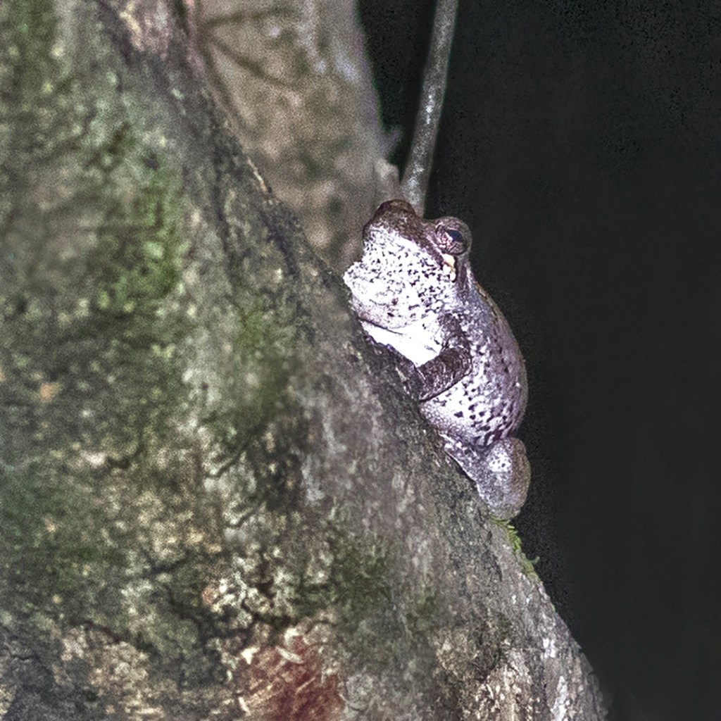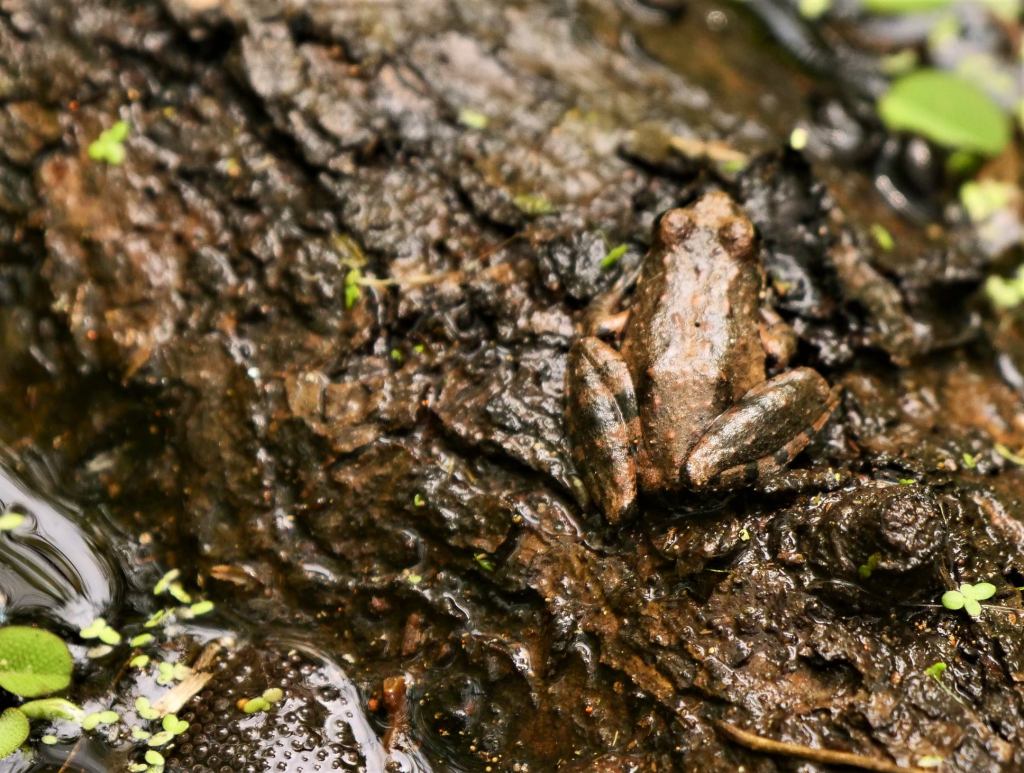 Near the beginning of the boardwalk we heard the banjo sound of bronze frogs, but they were soon drowned out by the steady chatter of the bird-voiced tree frog, the tiny frog with a big voice that really does sound like a bird.
