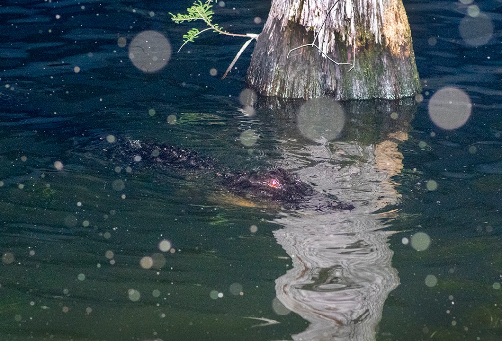 BTW, the “red eye” is totally due to my speed light, but I love the slightly spooky effect in this photo. ‘Gators have black eyes.