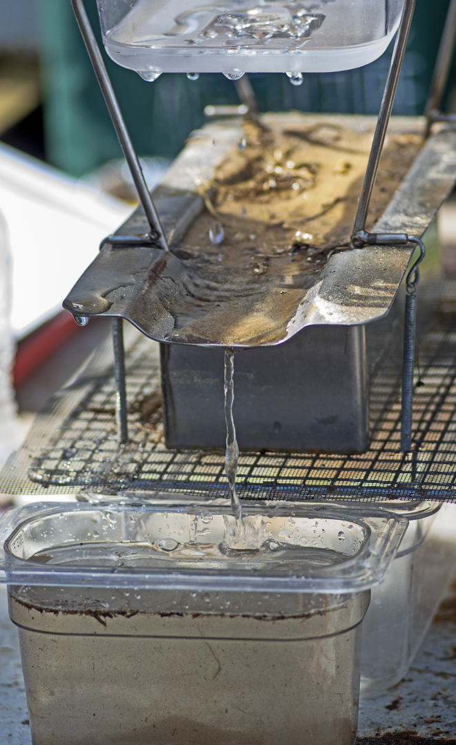 While waiting for water to disappear into the soil in our infiltration test, I focused my macro lens on the critters popping out of the ground. You should see two in this photo.